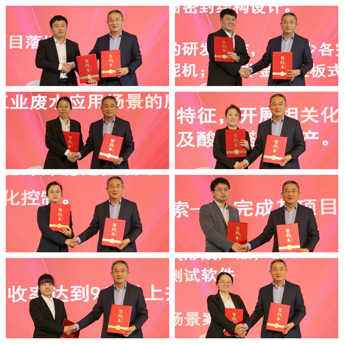 盛典在市經(jīng)開區(qū)管委會(huì)副主任方強(qiáng)的致辭中拉開了帷幕,在接下來的產(chǎn)品推介會(huì)上,來自裝配式水廠、深床反硝化濾池系統(tǒng)、高效/磁混凝系統(tǒng)、BAF智慧工藝、臭廢氣收集及處理系統(tǒng)、工業(yè)物聯(lián)智能控制產(chǎn)品及系統(tǒng)、魔方智水產(chǎn)品、環(huán)保非標(biāo)設(shè)備八個(gè)團(tuán)隊(duì)的產(chǎn)品經(jīng)理從市場(chǎng)角度出發(fā),分享了各自技術(shù)化產(chǎn)品的新功能、新亮點(diǎn)以及產(chǎn)生的效益,并規(guī)劃了2025年的市場(chǎng)工作、產(chǎn)品應(yīng)用場(chǎng)景擴(kuò)展、升級(jí)的思路及目標(biāo)。隨后,會(huì)議舉行了八位產(chǎn)品經(jīng)理與副董事長(zhǎng)鄭俊簽約及市場(chǎng)銷售人員誓師儀式。